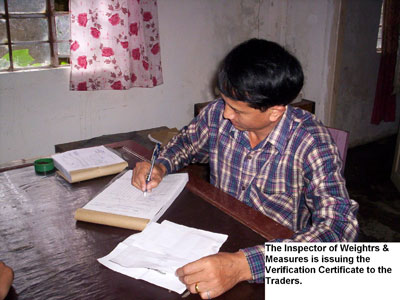 The Inspector of Weights and Measures is issuing the Verification Certificate to the Traders